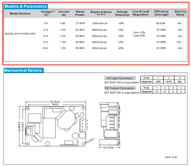 If your medical equipment requires more powerful support, the 65W-UES65-OP series is definitely the best choice. It has also passed medical and I.T.E. safety certifications, with 2 MOPP isolation protection and A contact current of ≤100μA, making it impeccable in terms of safety performance. The six-level energy efficiency combined with a standby power consumption of ≤0.15W saves energy and reduces consumption, thus easing the operating costs of hospitals.