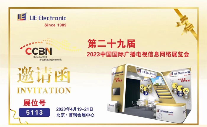 2023-04-10The 2023 China International Radio and Television Information Network Exhibition - CCBN 2023 will be held on April 19.21. UE Electronic will bring new ITE power products to Beijing Shougang Convention and Exhibition Center (booth number: 5113). We are waiting for you in Beijing!