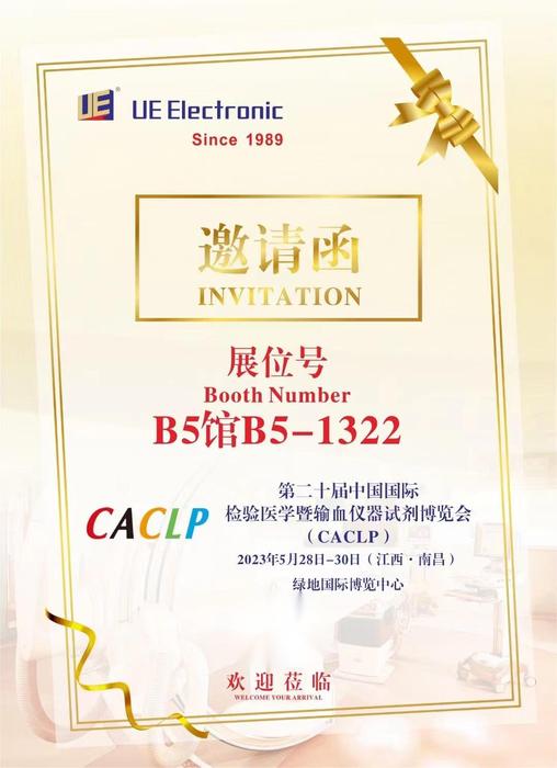 2023-05-25UE Electronics multi-series new medical power supplies will be unveiled at the China International Laboratory Medicine and Blood Transfusion Equipment Reagent Expo (CACLP). You are welcome to visit and guide us!